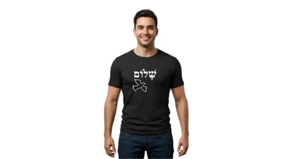 Mais do que uma camiseta, a Camiseta Preta Shalom Hebraico com a imagem de uma pomba é uma declaração de fé, propósito e identidade.