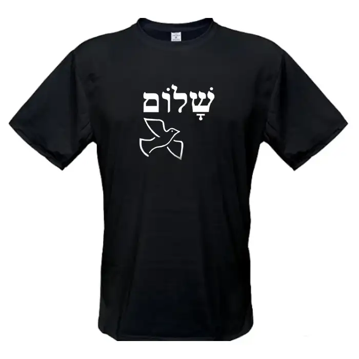 Camiseta Preta Shalom Hebraico + imagem pomba